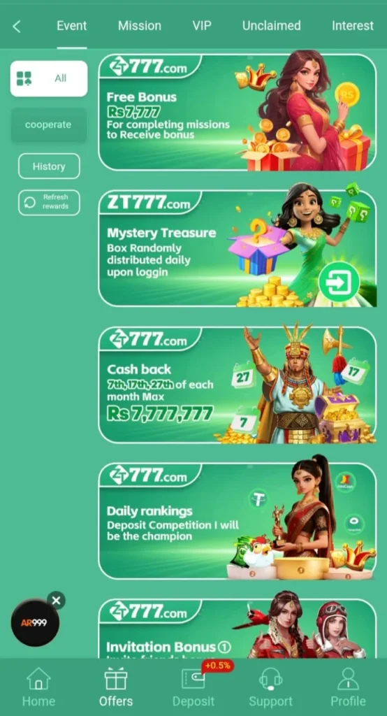 ZT777 Game rewards players with daily login bonuses, free spins, lucky draws, and special event rewards. Users can accumulate points and exchange them for cash, maximizing earning opportunities without extra investment.